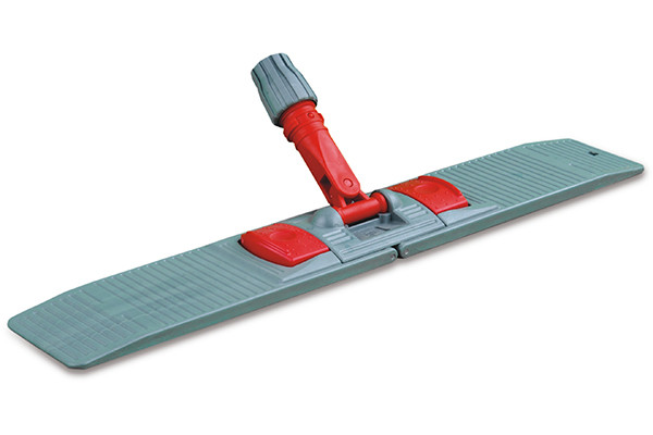 Этот флаундер для мытья пола подходит для обычного мопа, дополненного кармашками. Чтобы установить моп, следует сложить механизм пластикового приспособления, надеть расходную часть, а затем зафиксировать ее. У рукоятки имеется шарнирный механизм. Благодаря этому ручка может наклоняться как угодно, достигая угла 180 градусов. Флаундер для мытья имеет сорокасантиметровую рабочую поверхность.