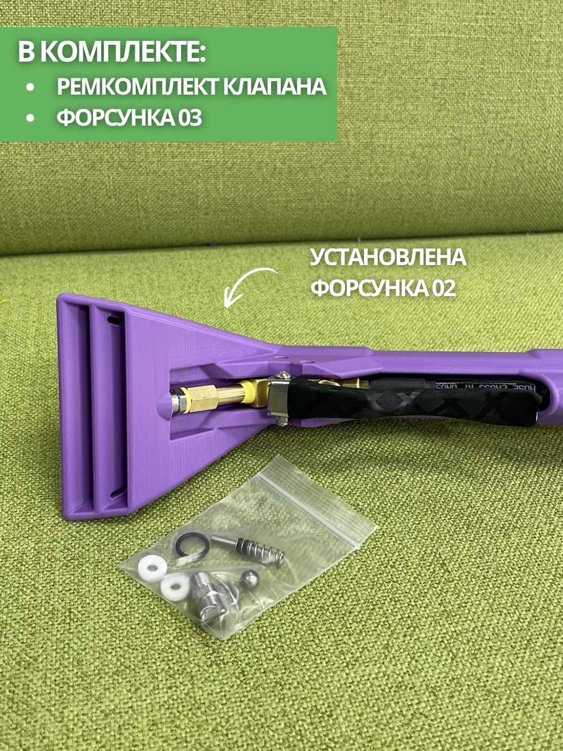 Установлена 02 форсунка, в комплекте запасное стекло, ремкомплект клапана, форсунка 03.