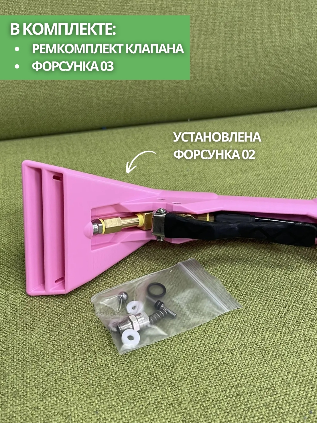 Установлена 02 форсунка, в комплекте запасное стекло, ремкомплект клапана, форсунка 03.