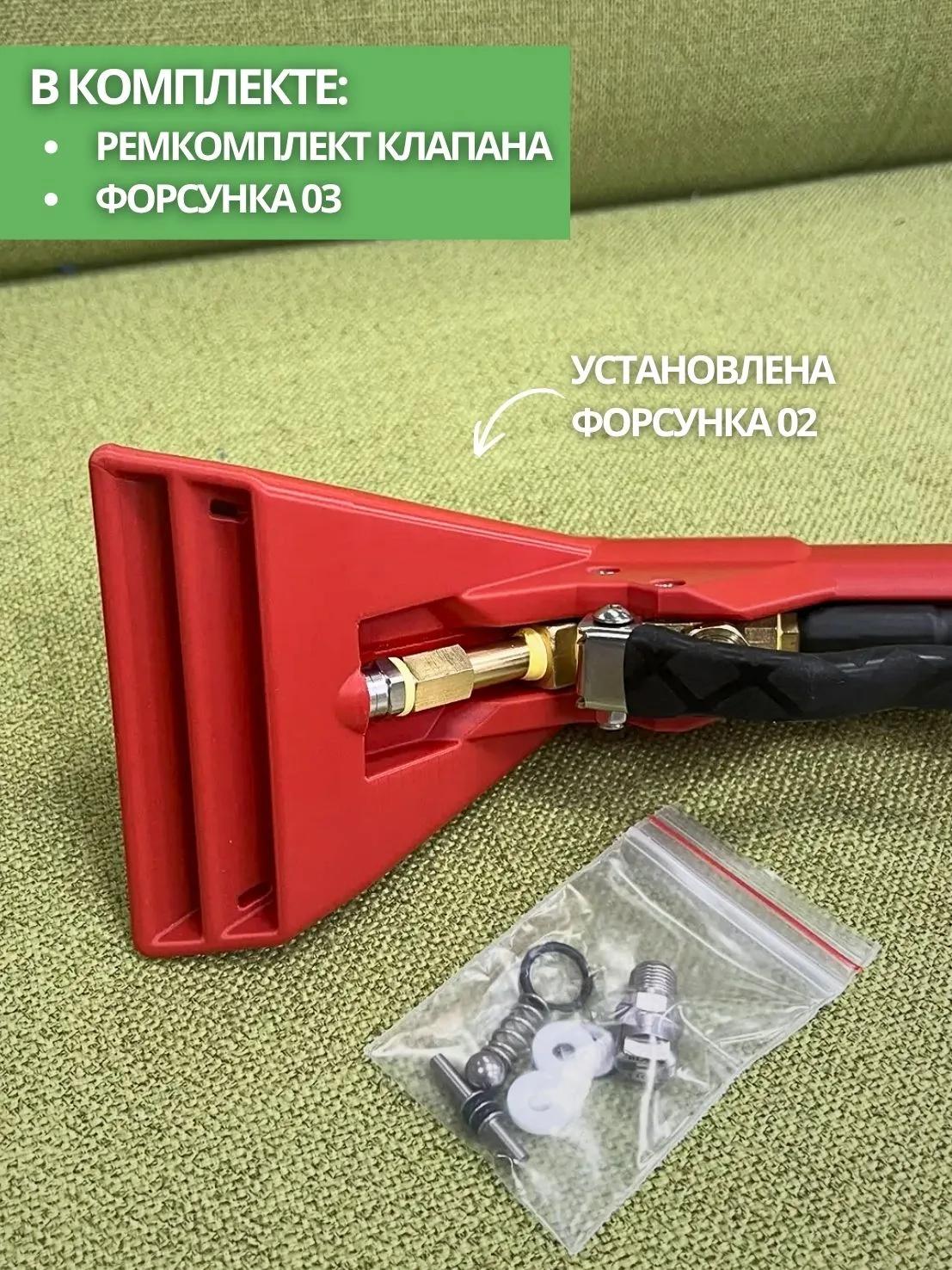 Установлена 02 форсунка, в комплекте запасное стекло, ремкомплект клапана, форсунка 03.