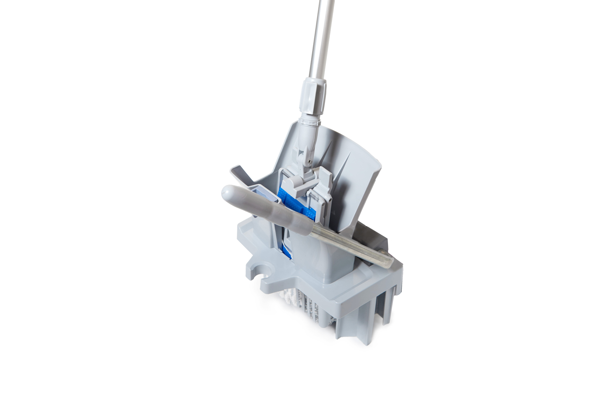 За счет уменьшенной камеры отжима Росмоп Кваттро происходит более качественный отжим плоских моющих насадок (на 38% по сравнению с классическими универсальными отжимами).