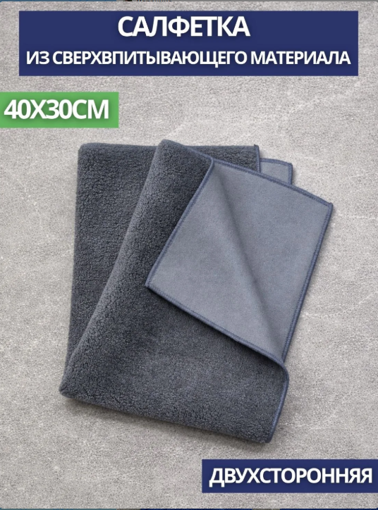 Быстро и эффективно впитывает влагу и жидкости, минимизируя разводы и подтёки. Каждая сторона имеет разную текстуру. С одной стороны салфетки - микроволокно которое отлично впитывает влагу, не оставляет ворса, подходит для протирки любых поверхностей. С другой стороны - специальная гладкая текстура, которая отлично полирует и натирает поверхности.