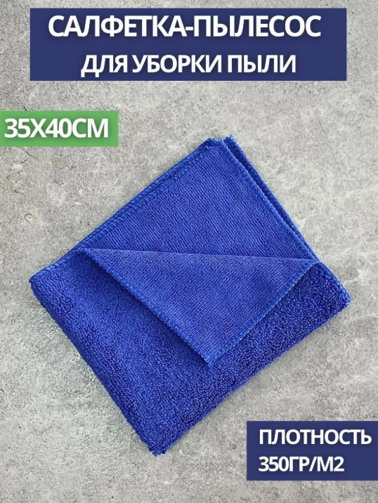 Салфетка-пылесос из микрофибры махра 350гр. 35*40см, синяя