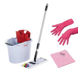 ведро 10 л с красным туннельным отжимом, ручка телескопическая, держатель мопов 34 см, моп МикроЛайт УльтраСпид Мини, 1 пара красных перчаток Многоцелевые размер М, 1 красная салфетка ПВА Микро